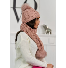 Női téli kalap és sál K110 púder rózsaszín