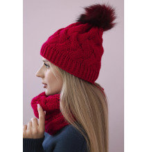 Női téli kalap és sál PLK5 pirós