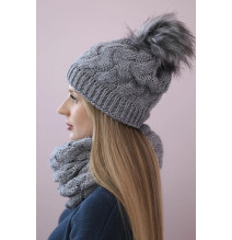 Női téli kalap és sál MIP104 szürke