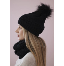Női téli kalap és sál MIK199 fekete