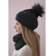 Női téli kalap és sál PLK4 grafit