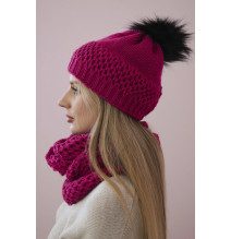 Női téli kalap és sál PLK4 fukszia