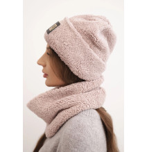 Női téli kalap és sál CZ18 púderrózsaszín
