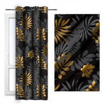Függöny a gyűrűk 140x250 cm fekete levelekkel