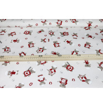 Dekoratív pamutszövet Teddy mackó szakács bordó színben, szélesség 140 cm