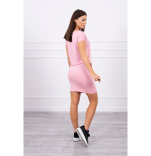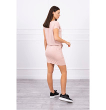 Viszkóz ruha a derékhoz kötve rövid ujjú MI9074 por rózsaszín
