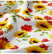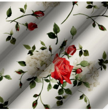 Függöny szalaggal 140x250 cm fehér, piros virágokkal