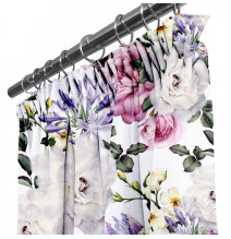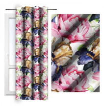 Függöny a gyűrűk 140x250 cm fehér, rózsaszín virágokkal