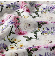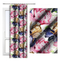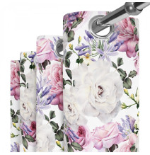 Függöny szalaggal 140x250 cm fehér, rózsaszín virágokkal
