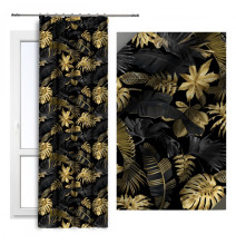 Függöny szalaggal 140x250 cm fekete, levél szörnyeteg