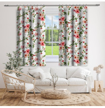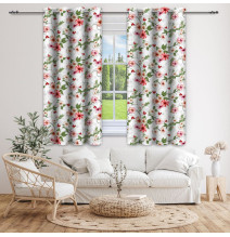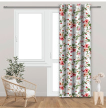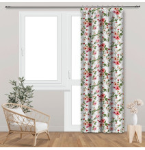 Függöny szalaggal 140x250 cm bézs, nagy virágokkal