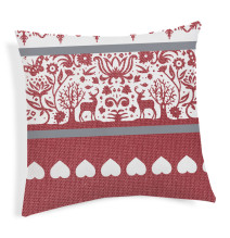 Piros karácsonyi párnahuzat tündékkel és szívekkel