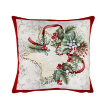 Karácsonyi gobelin párnahuzat - Téli dekoráció magyal és szalaggal