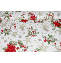 Anyag Pamut Karácsonyi rózsák bézs, m. 140 cm